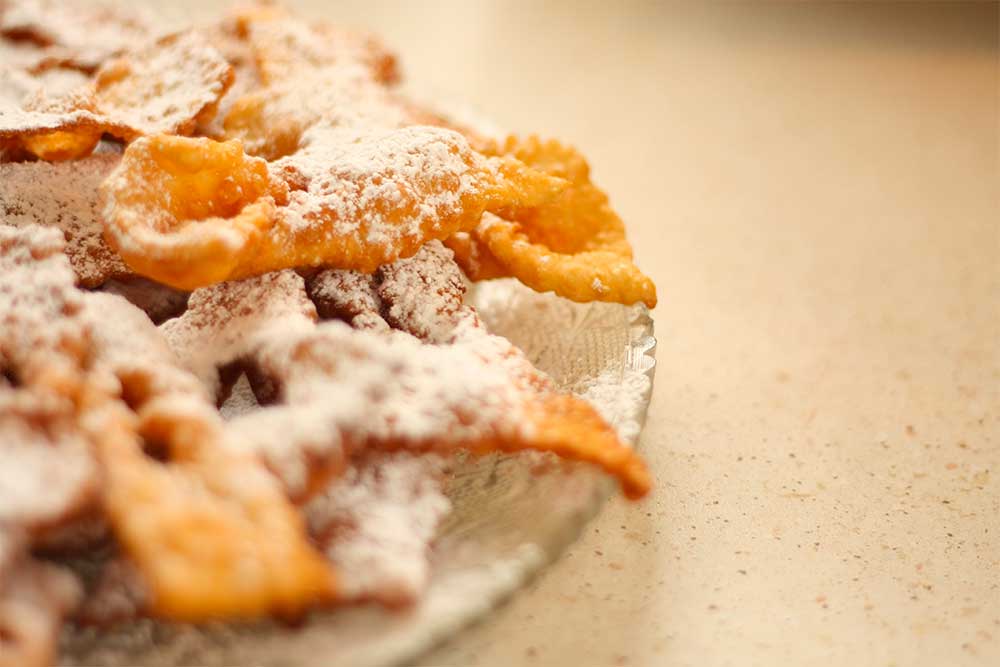 10 Mar Ricette Dolce tipico di Carnevale: ” LE CHIACCHIERE” 10 Marzo 2018 By redazione 0 comments Ingredienti: 500gr di farina, 100gr di zucchero, 3 uova, abbondante zucchero a velo, olioextravergine di oliva “Aziend... Continue reading